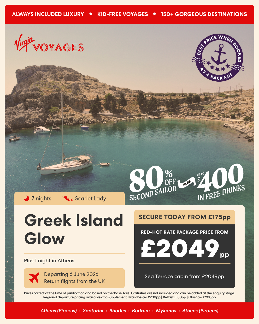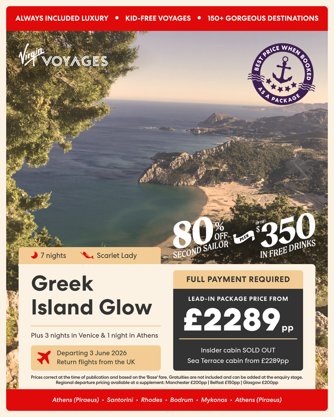 7 night Greek Island Glow + 3 nights in Venice + 1 night in Athens - 3 June 2026