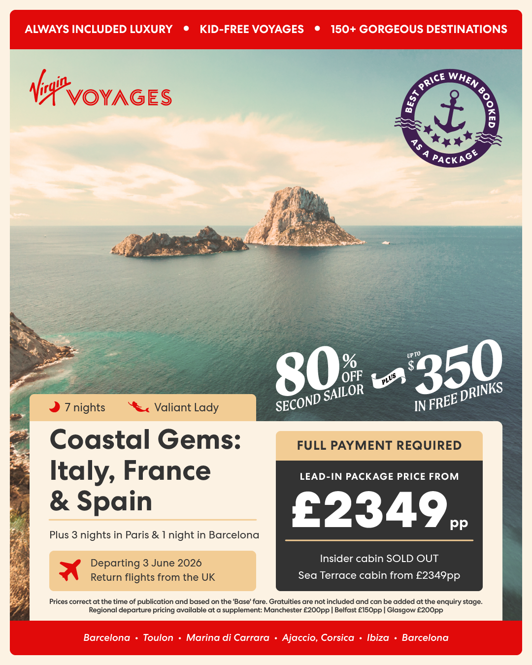 7 night Italian Vistas to Spanish Sunsets + 3 nights in Porto + 1 night in Barcelona - 17 June 2026
