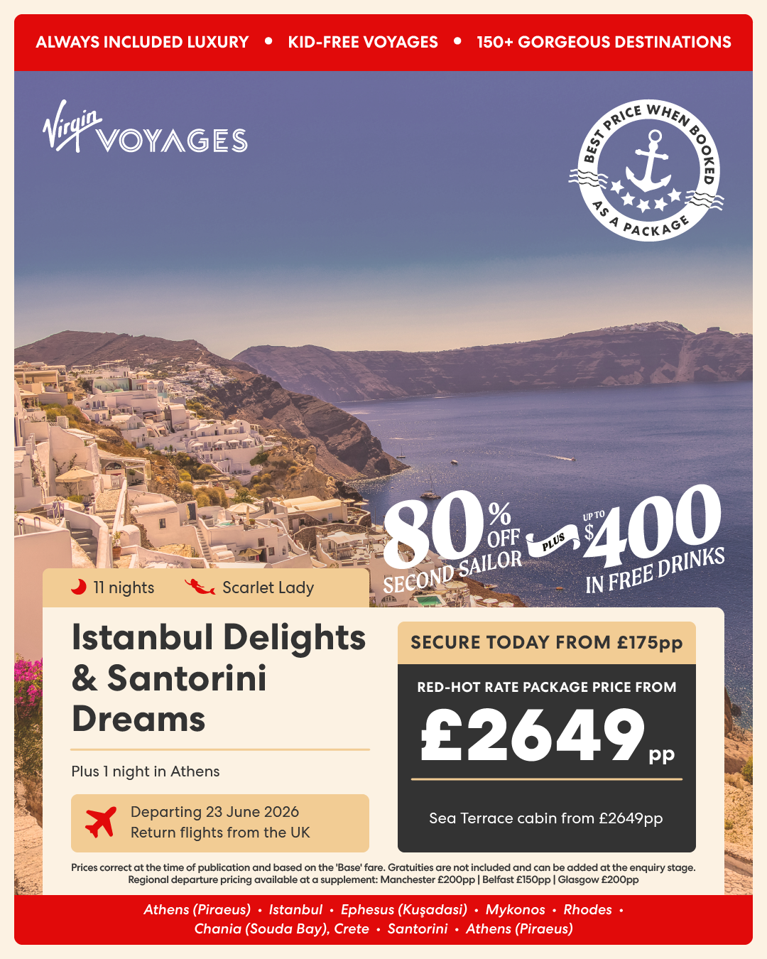 11 night Istanbul Delights & Santorini Dreams + 1 night in Athens - 23 June 2026
