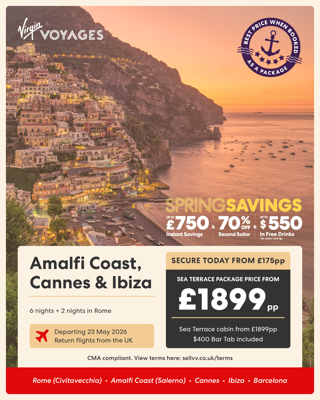 7 night Coastal Gems: Italy, France & Spain + 1 night in Barcelona - 6 June 2026