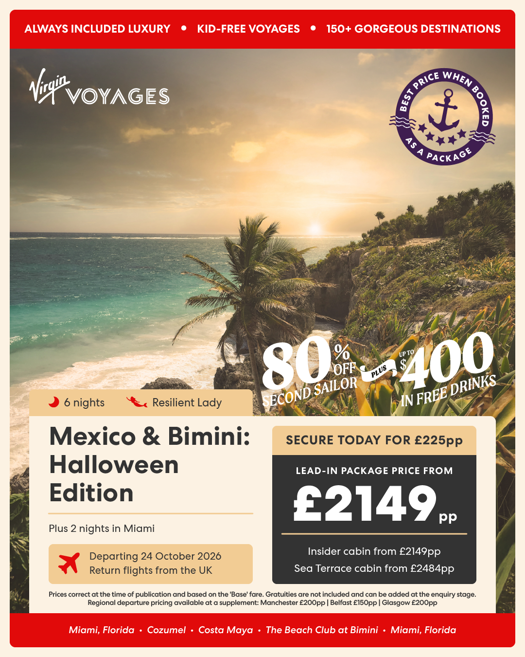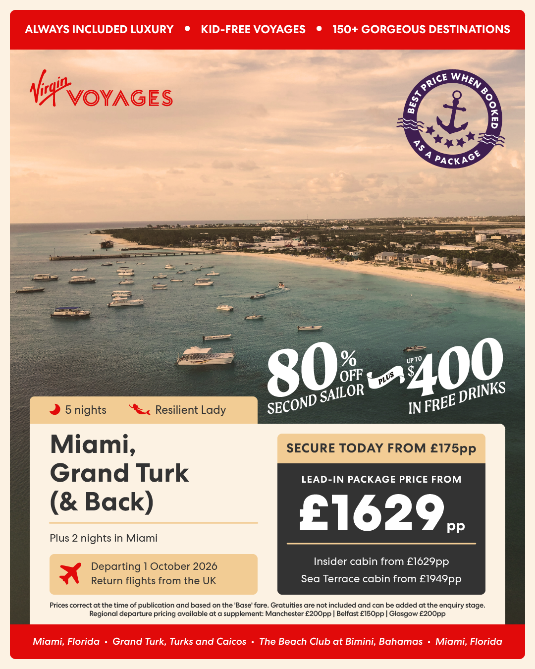 5 night Miami, Grand Turk (& back) + 2 night pre-cruise stay in Miami - 1 October 2026