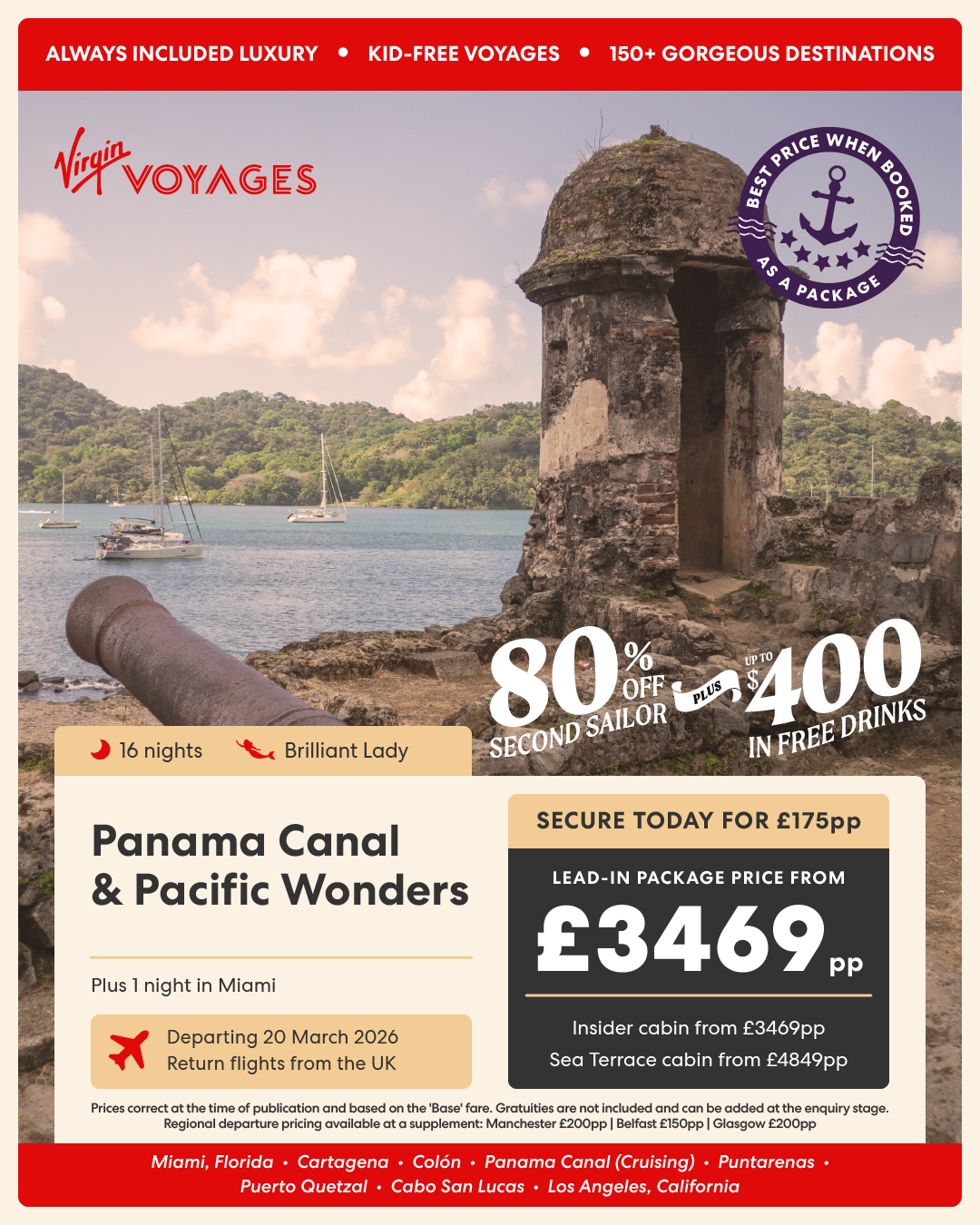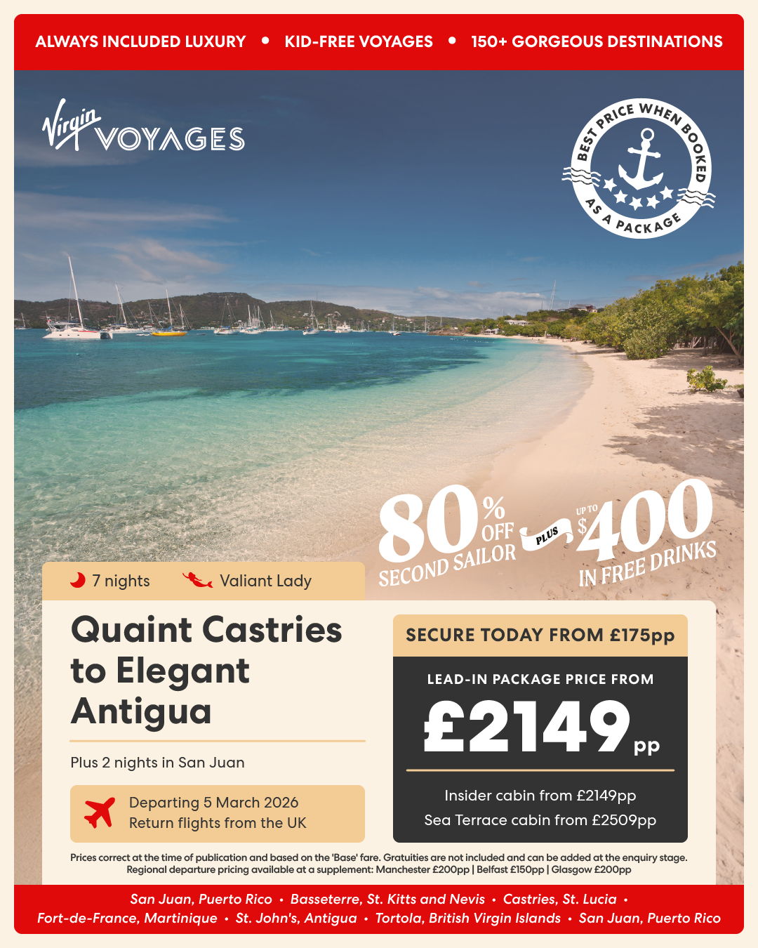 7 night Quaint Castries to Elegant Antigua + 2 night pre-cruise stay in San Juan - 5 March 2026