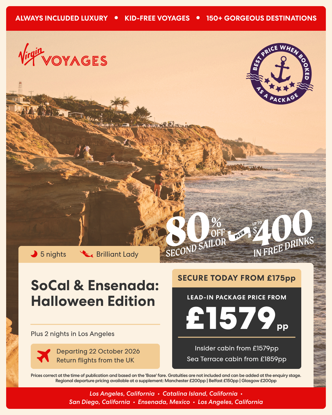 5 night SoCal & Ensenada: Halloween Edition + 2 night pre-cruise stay at The Garland, Los Angeles - 22 October 2026