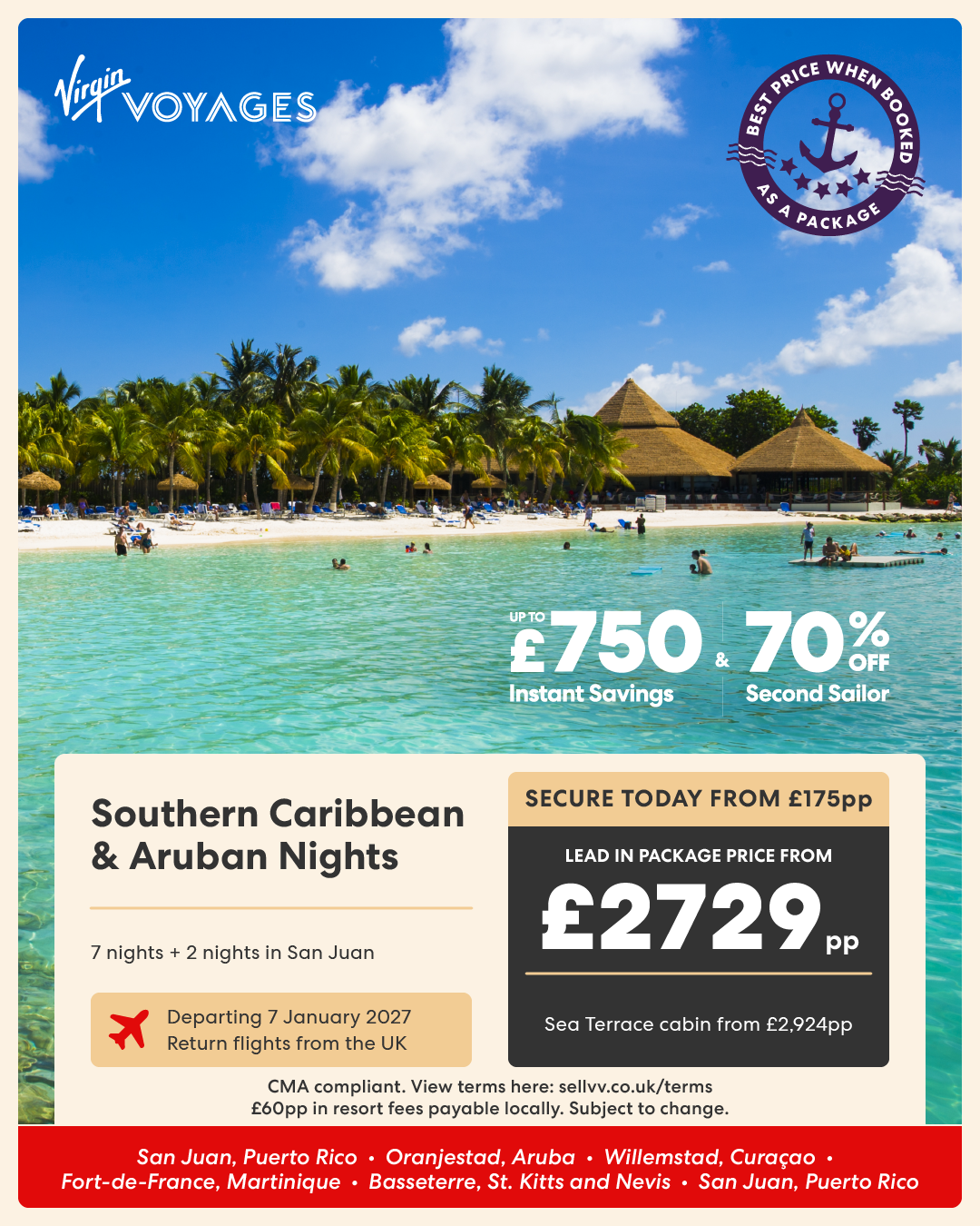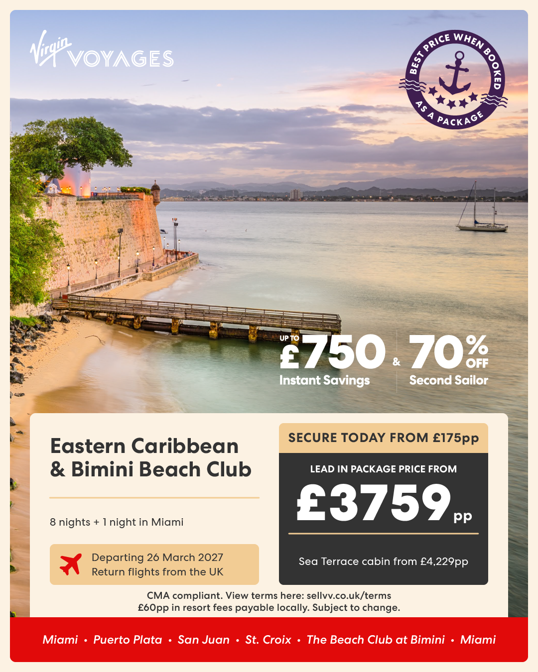 8 night Eastern Caribbean & Bimini Beach Club + 1 night in Miami - 26 March 2027
