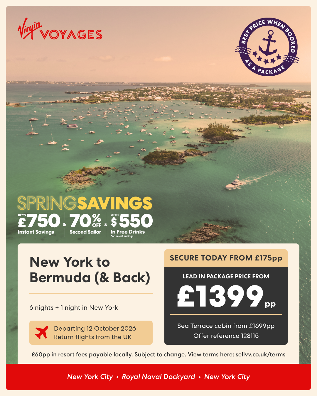 6 night New York to Bermuda (& Back) + 1 night in New York - 12 October 2026